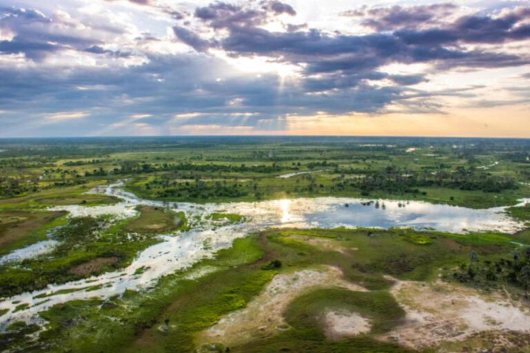 - Botswana’s Okavango Delta is green, watery, and full of life.
